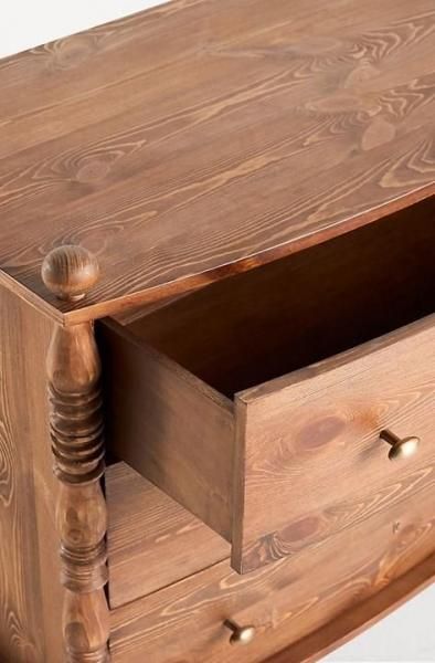 アカシア突板材のドレッサー。エンジニアードハードウッドで補強されています。3つの引き出しは金属製のスライドレールで開閉します。柔らかい布で拭いてください。化学洗剤は使用しないでください。