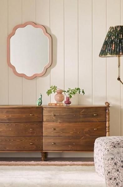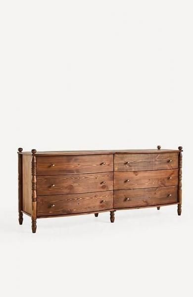 アカシア突板材のドレッサーは、エンジニアードハードウッドで補強されています。引き出し6つは金属製のスライドレールで開閉します。柔らかい布で拭いてください。化学洗剤は使用しないでください。