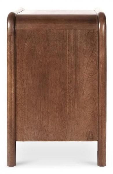 同系色の織り込みフロントの引き出しを備えたこの現代的なナイトスタンドは、空間に洗練された質感を添えると同時に、十分な収納力を備えています。