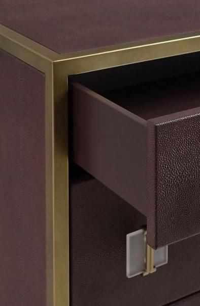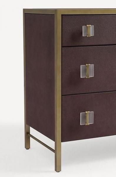 粒状のシャグリーン材とブラッシュ仕上げの真鍮金具が美しく調和したアールデコ調のドレッサーは、ご自宅にヴィンテージな魅力を添えます。6段の引き出しに衣類を収納するもよし、個性豊かなアンティークを飾るもよし。このドレッサーは、お部屋の雰囲気を格段に引き立てる、エレガントな存在感を放ちます。