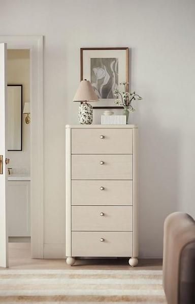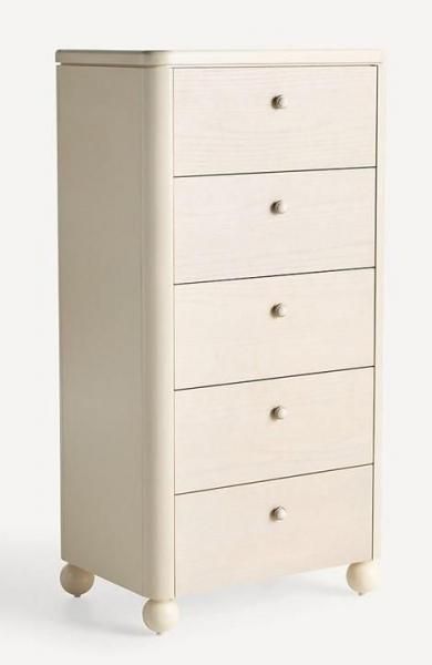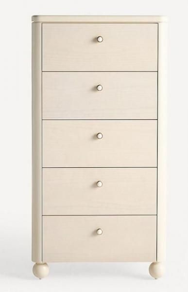 バルーン脚と高さのある堂々としたシルエットが、この5段引き出し付きドレッサーを寝室の必需品にしています。
