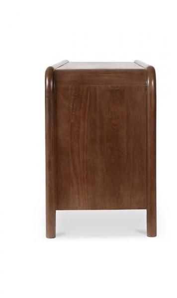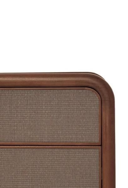 伝統的な張り地のパイピングディテールを独創的に表現した、同系色の織り込まれた柔らかなイグサのフロントは、ライ・ドレッサーのトロピカルウッドの無垢材構造を引き立てながら、質感を高めています。「畳表」として知られるこの天然の稲わらは、何世紀も前から使われている天然素材で、耐久性と吸湿性の高さで知られています。日本に起源を持ちます。