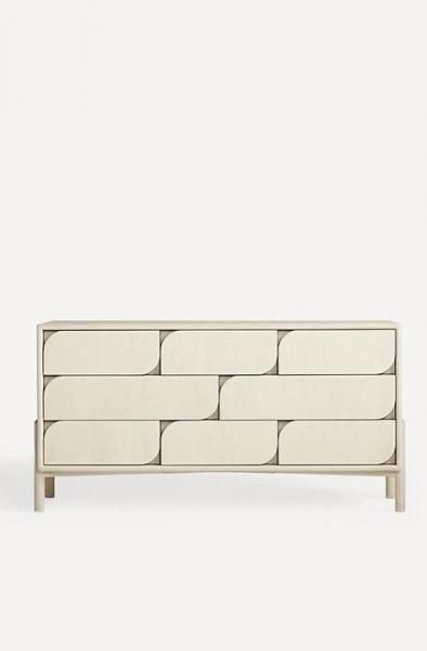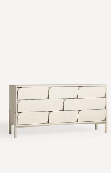 オーク材のみを使用したこのドレッサーは、8つの引き出しを備え、思わず見とれてしまうような動きのあるデザインです。