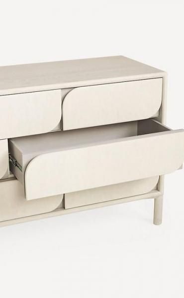 FSC認証のオーク無垢材ドレッサー。エンジニアードハードウッドで補強し、ブリーチ仕上げを施しています。8つの引き出しは金属製のスライドレールで開閉します。