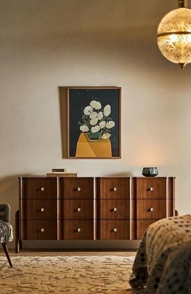 天然木と目を引く曲線が美しいこのドレッサーは、究極の寝室収納ソリューションです。