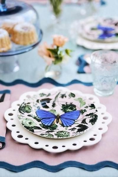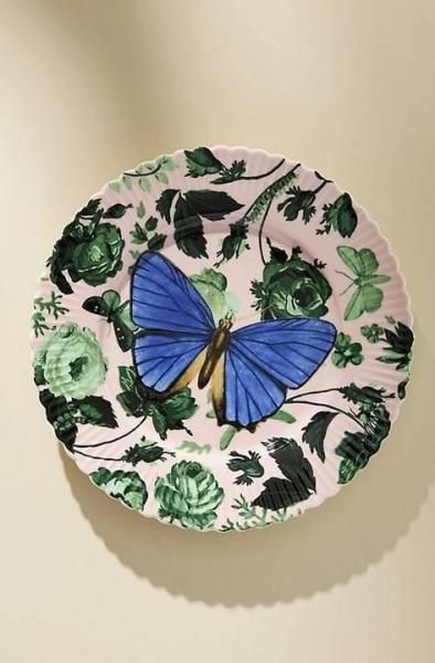 繊細な翼のある生き物が描かれたこのデザート プレートは、甘いお菓子で満たされた夜に庭で育った雰囲気を添えます。