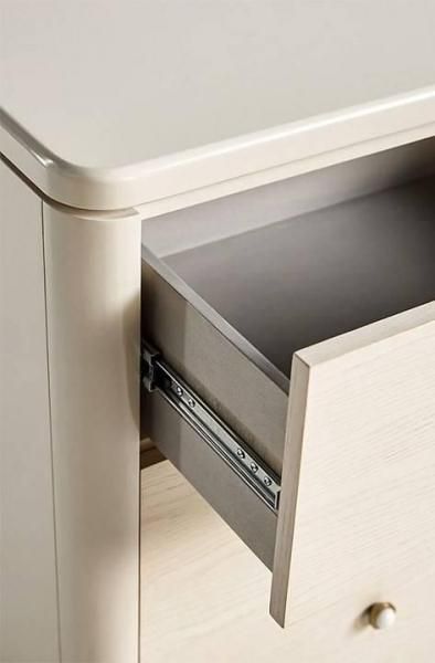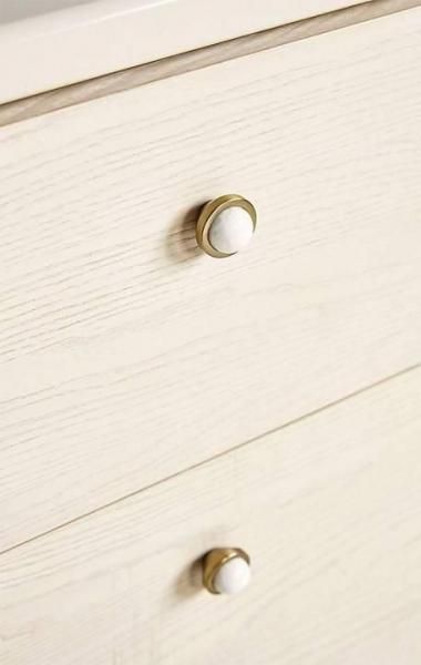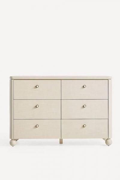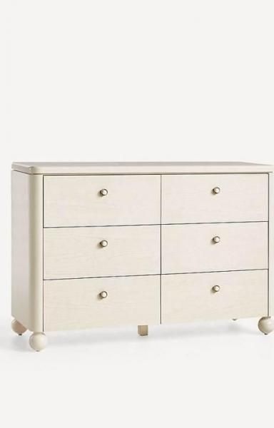 可愛らしい球状の脚が特徴の、北欧らしい魅力あふれる6段引き出し付きドレッサー。ミニマルで温かみがあり、魅力的なこの洗練されたシルエットは、お気に入りのワードローブアイテムたちにとって、きっと心地良い空間となるでしょう。