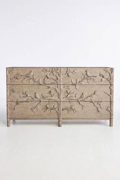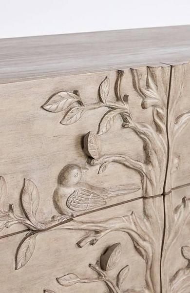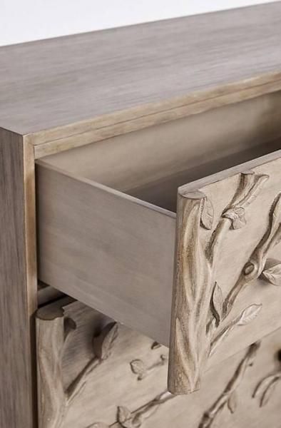 穏やかな木々の梢を描いたこの手彫りのドレッサーは、クラシックでロマンチックなデザインにインスパイアされており、寝室にも玄関にも最適です。