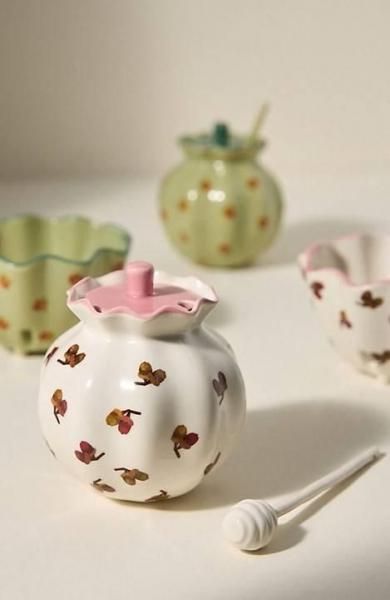Georgie Handpainted Decaled Stoneware Honey Pot