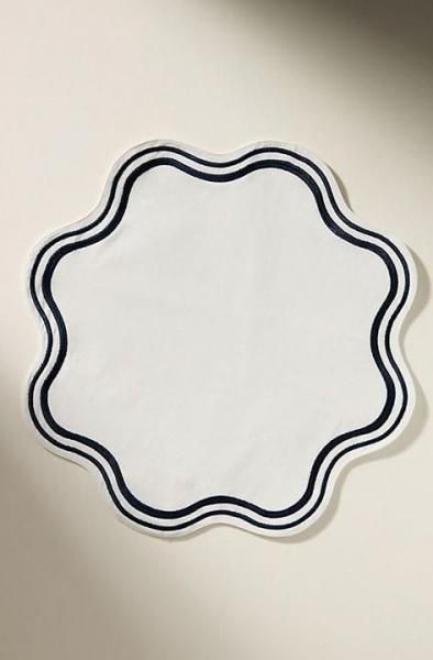 スカロップ模様が特徴のこのプレースマットは、テーブルに明るい雰囲気を添えます。