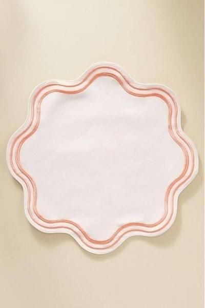 スカロップ模様が特徴のこのプレースマットは、テーブルに明るい雰囲気を添えます。