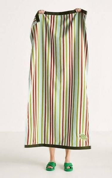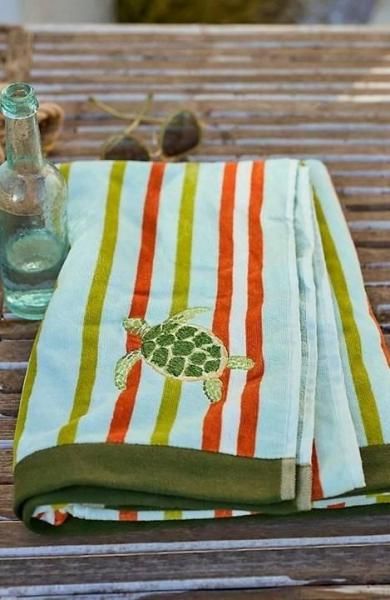 ベロアのトリムと太陽の光を浴びたような刺繍のディテールが特徴の、綿100%のビーチタオル。プールサイドや海辺で過ごす日々にぴったりです。