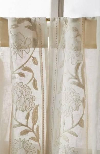Embroidered Manette Cotton Linen Sheer Cafe Curtains, Set of 2