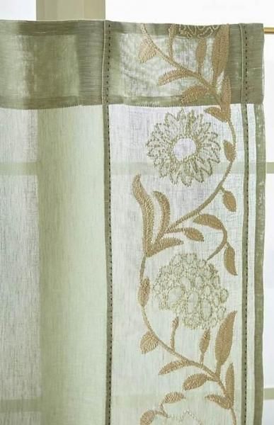 Embroidered Manette Cotton Linen Sheer Cafe Curtains, Set of 2