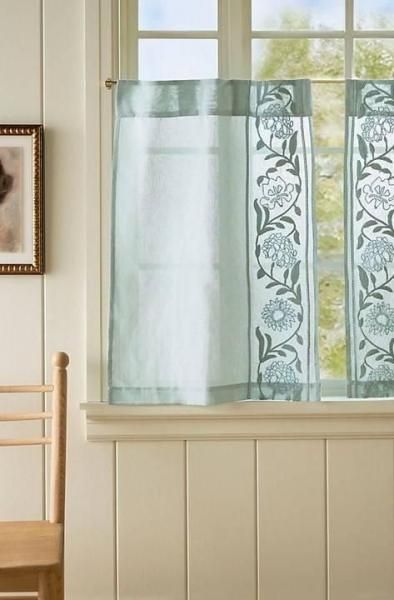 Embroidered Manette Cotton Linen Sheer Café Curtains, Set of 2