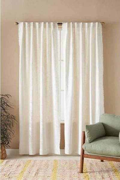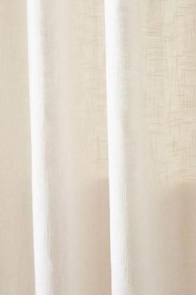 リネンとビスコースを贅沢にブレンドした厚手のカーテン。オープン織り、ローエッジトリム、そしてシルクのような美しいドレープが特徴で、繊細な光沢と豊かな質感、洗練されたインテリアを演出します。
