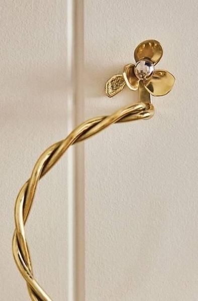 シルバーと真鍮の色合いで作られた彫刻的な花と、ねじれた蔓が、どんなバスルームにも遊び心のある雰囲気を添えます。