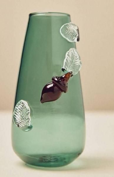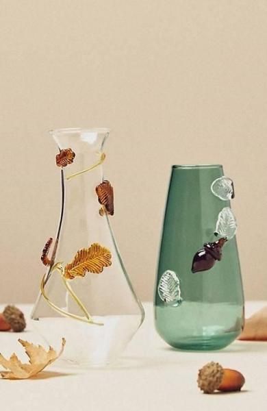 秋をイメージした繊細な装飾が施されたガラス製のアンバーベースは、秋のテーブルコーディネートに最適です。