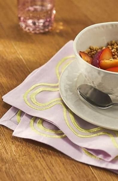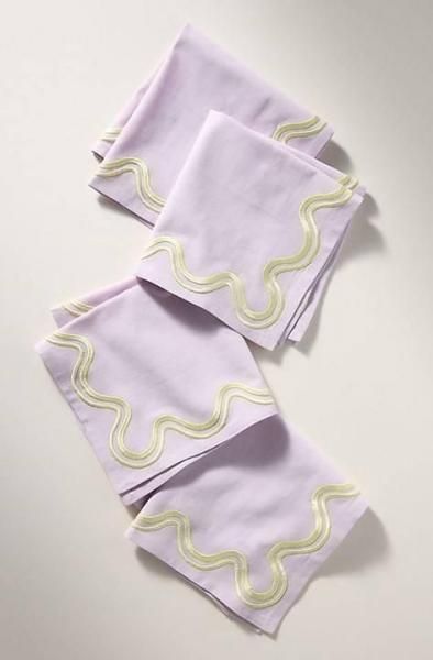 スカロップ模様の刺繍が施されたこのナプキンセットは、テーブルに明るい雰囲気を添えます。