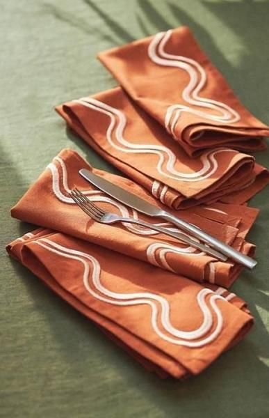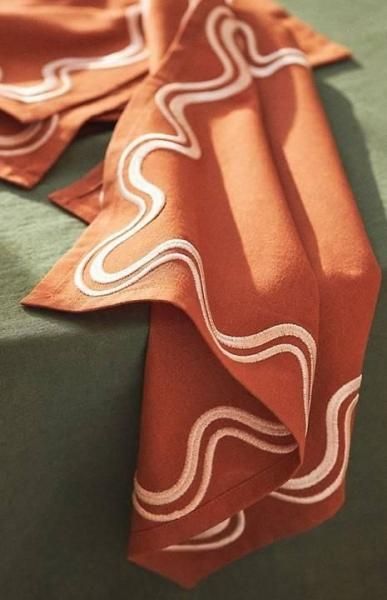 スカロップ模様の刺繍が施されたこのナプキンセットは、テーブルに明るい雰囲気を添えます。