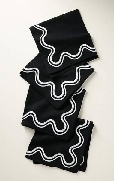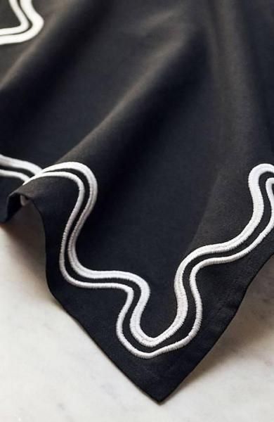 スカロップ模様の刺繍が施されたこのナプキンセットは、テーブルに明るい雰囲気を添えます。