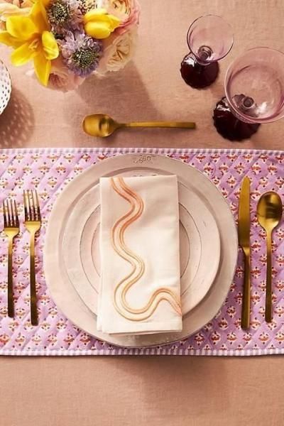 スカロップ模様の刺繍が施されたこのナプキンセットは、テーブルに明るい雰囲気を添えます。