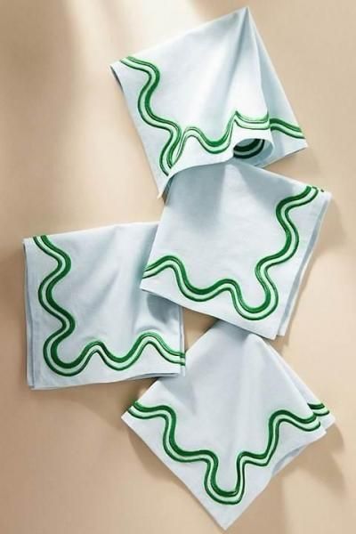 スカロップ模様の刺繍が施されたこのナプキンセットは、テーブルに明るい雰囲気を添えます。