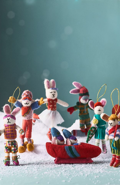 楽しいホリデーシーズンをお過ごしください!このハンドメイドのウサギのオーナメントは、ツリーに雪の楽しさを添えてくれます。