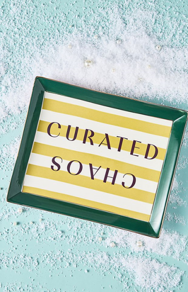 とってもキュートな模様の小物入れトレイ。動物、スローガン、そしてたくさんの花々が描かれています。