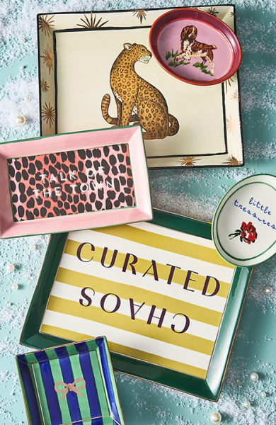 とってもキュートな模様の小物入れトレイ。動物、スローガン、そしてたくさんの花々が描かれています。