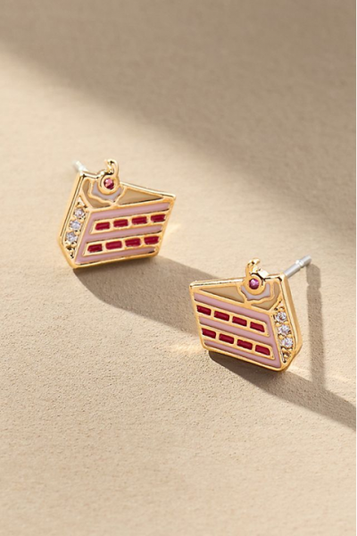 14Kゴールドメッキ真鍮、ガラス、キュービックジルコニア、エナメル