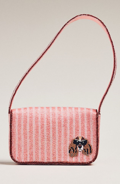 全面にガラスビーズを施したショルダーバッグ。コットンライニング