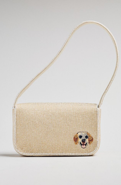 全面にガラスビーズを施したショルダーバッグ。コットンライニング