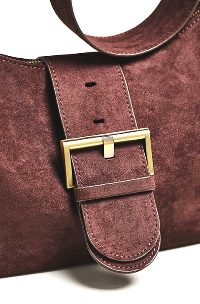 Faux Suede Big Buckle Slouchy Shoulder Bag
