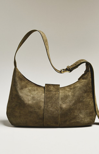 Faux Suede Big Buckle Slouchy Shoulder Bag